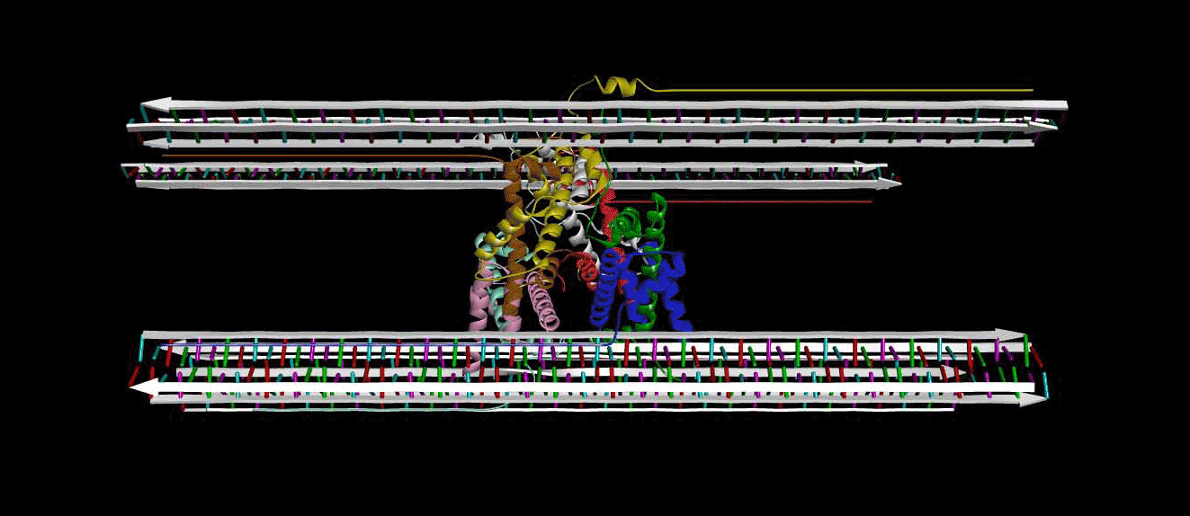 Nucleosome model with Kornberg/Luger octamer core and "straight ladder" N-termini K. Biegeleisen, M.D., Ph.D.